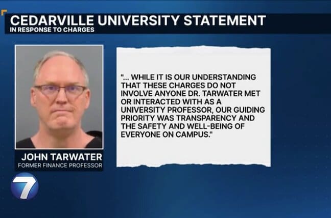 On Tuesday (March 31), Cedarville University emailed its students and staff about Tarwater’s arrest and the charges against him. John W. Davis, the school’s associate vice president for human resources, wrote that the university was “informed in July 2025 that Dr. Tarwater was under investigation for concerning allegations.”