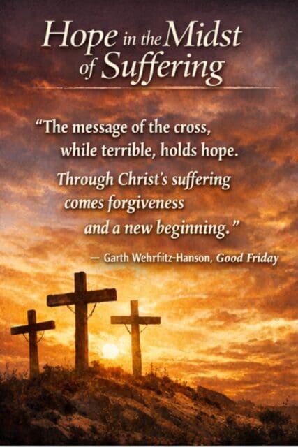 “The message of the cross, while terrible, holds hope. Through Christ’s suffering comes forgiveness and a new beginning.”